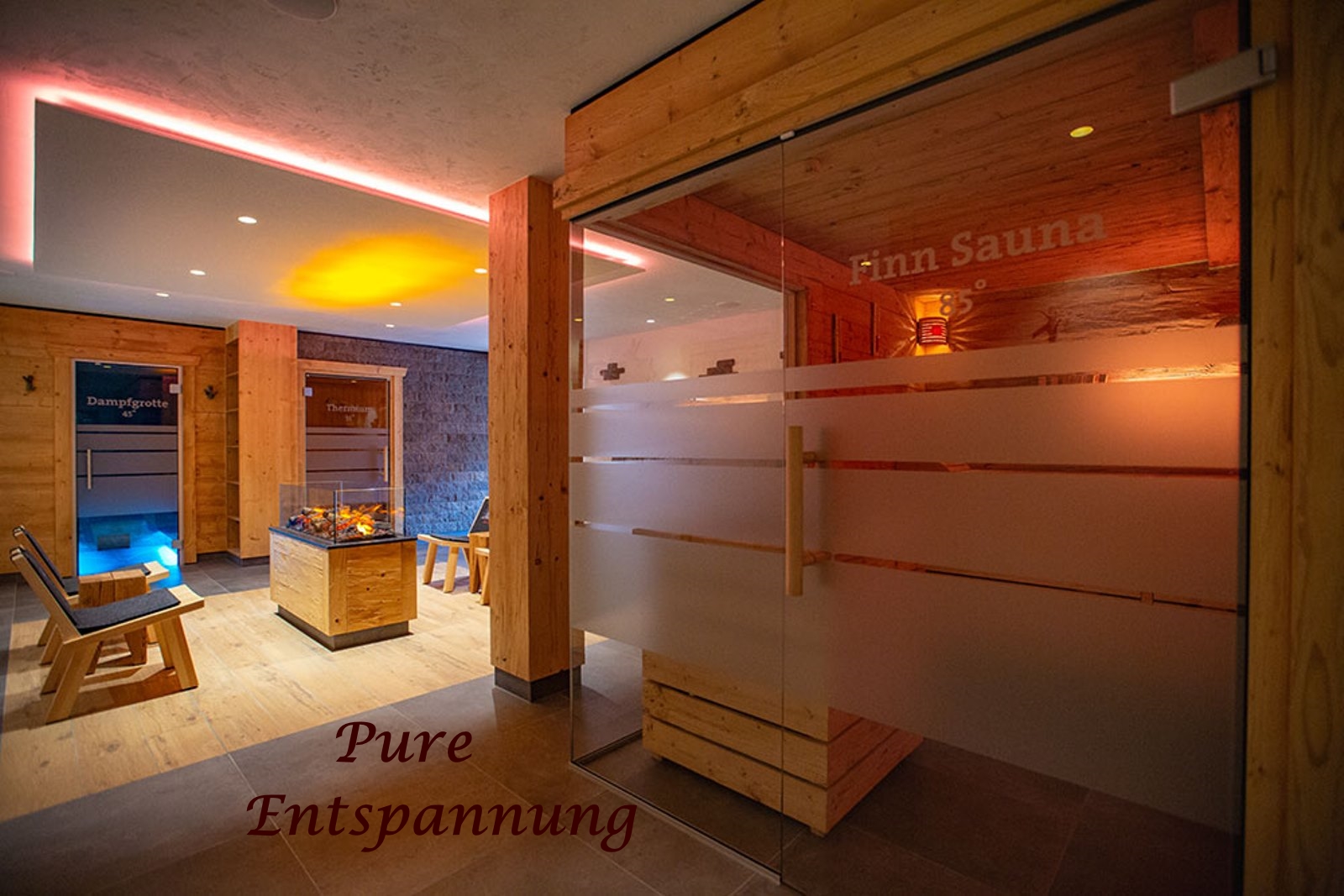 Genießen Sie Wohlfühlmomente in der Sauna-Landschaft, täglich von 13,00 Uhr bis 18,00 Uhr. Ganz im Stil unserer Heimat – dem Schwarzwald – mit finnischer Sauna, Thermium, Dampfbad-Grotte, Erlebnisdusche, Grander-Wasserstation, Lagerfeuer und Ruheraum mit Blick auf den Schwarzwald.